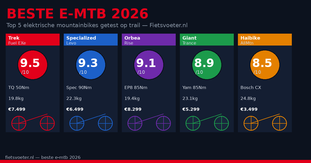 Beste e-MTB 2026: top 5 elektrische mountainbikes