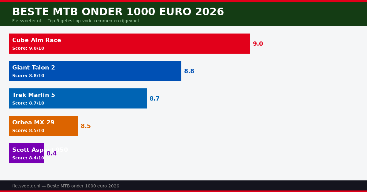 Beste MTB onder 1000 euro 2026: top 5 getest op prijs en kwaliteit