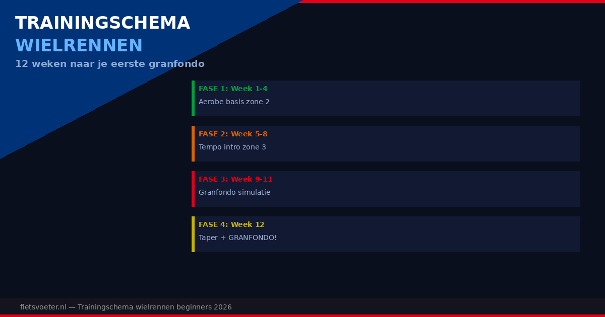 Trainingschema wielrennen beginners 2026: 12 weken naar je eerste granfondo