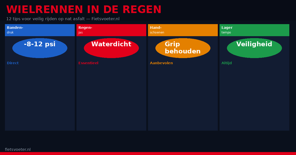Overweeg een aparte set regenbanden voor de herfst en winter. De Continental GP 4 Season is ontworpen voor jaarrond gebruik en heeft significant betere natte grip dan zuivere zomerbanden. Lees onze beste regenband gids voor de volledige vergelijking.